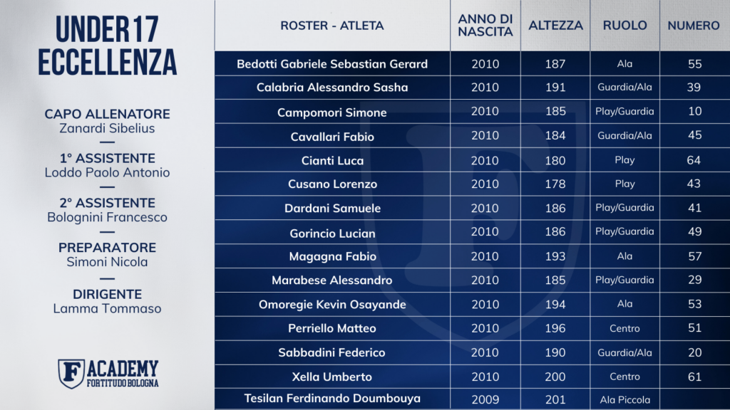 Per statuto, per missione e per vocazione Fortitudo Academy collabora con realtà cestistiche sul territorio per integrare la propria offerta cestistica – votata alla selezione di prospetti ad altro valore e prospettiva di crescita, nonché ad elevata eleggibilità per serie professionistiche – alla dimensione sportiva sana e diffusa delle categorie élite e regionali e fare sì che il futuro dei ragazzi sia con la F maiuscola.