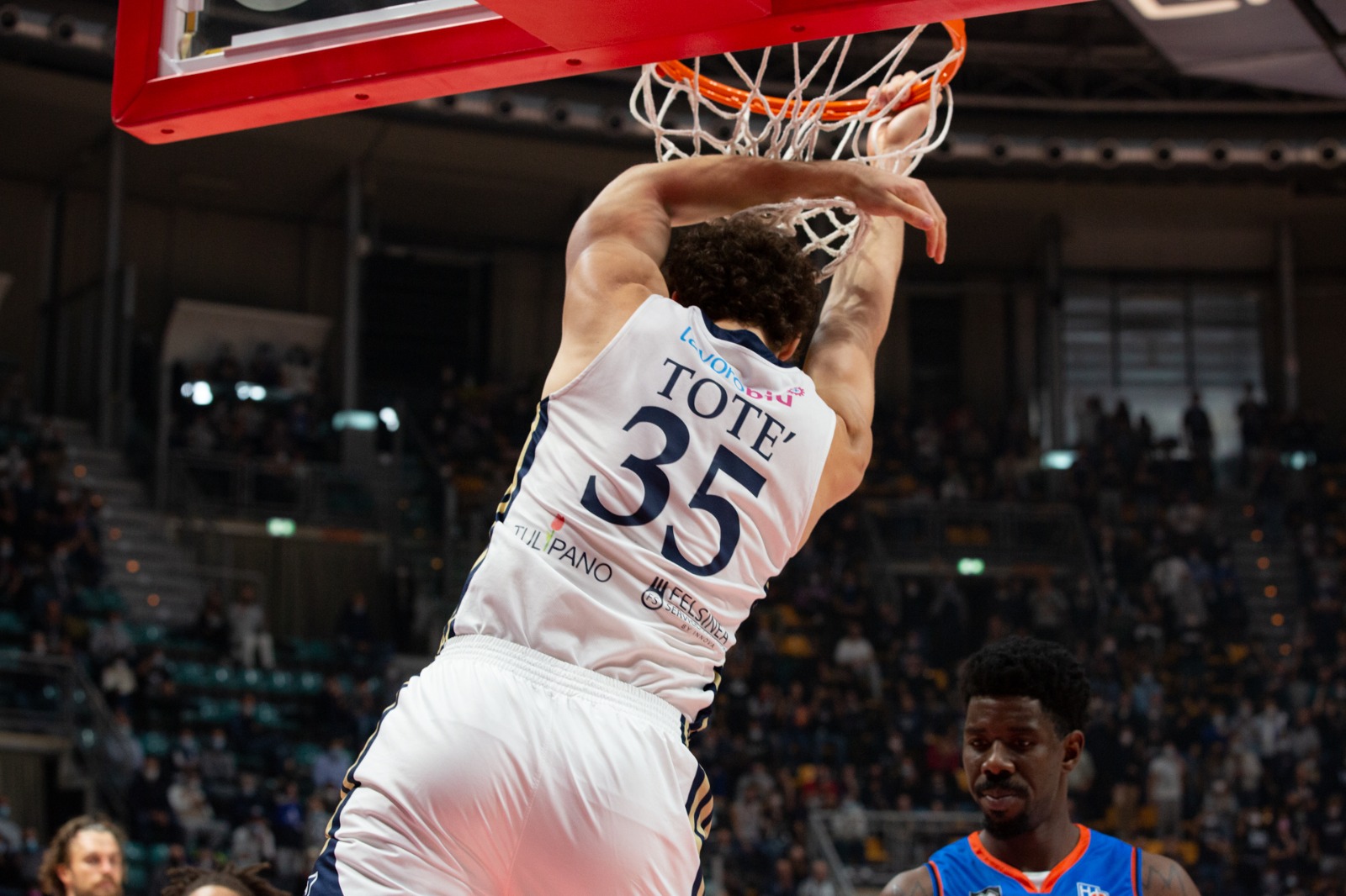 NUTRIBULLET TREVISO BASKET: Russell 8 (3/7, 0/4), Dimsa 2 (0/2, 0/2), Sokolowski 5 (1/1, 1/2), Akele 4 (2/4 da 2), Sims 24 (9/13, 1/3); Bortolani 12 (3/3, 2/4), Imbrò 6 (0/1, 2/7), Casarin (0/1 da 2), Chillo 3 (1/1 da 3), Jones 6 (3/5 da 2). Ne: Vettori. All.: Menetti