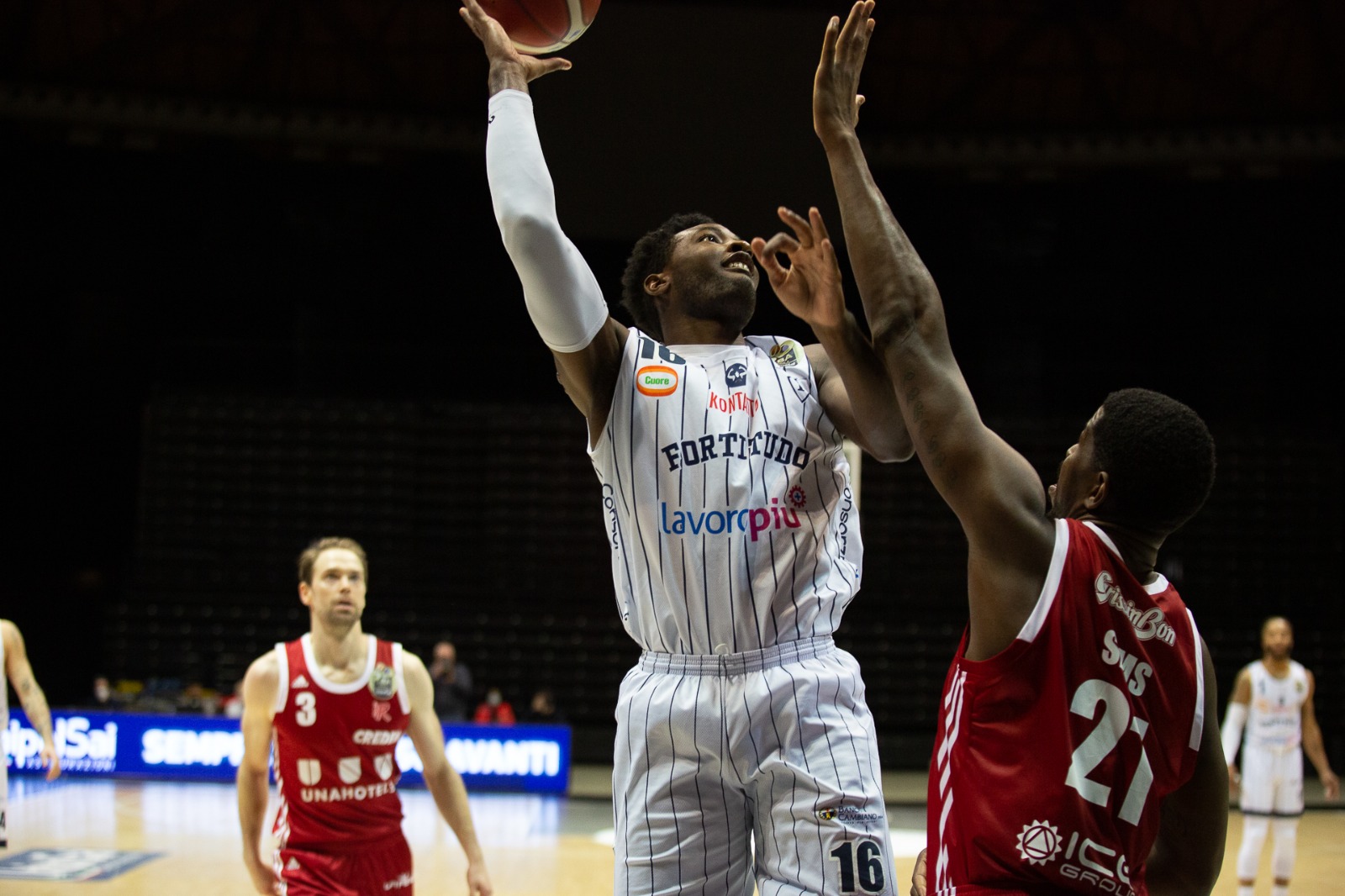FORTITUDO LAVOROPIU’ BOLOGNA: Baldasso 5, Hunt 22, Banks 23, Aradori 7, Fantinelli 2, Cusin 6, Totè,, Pavani, Manna, Saunders 2, Withers 4. All. Dalmonte