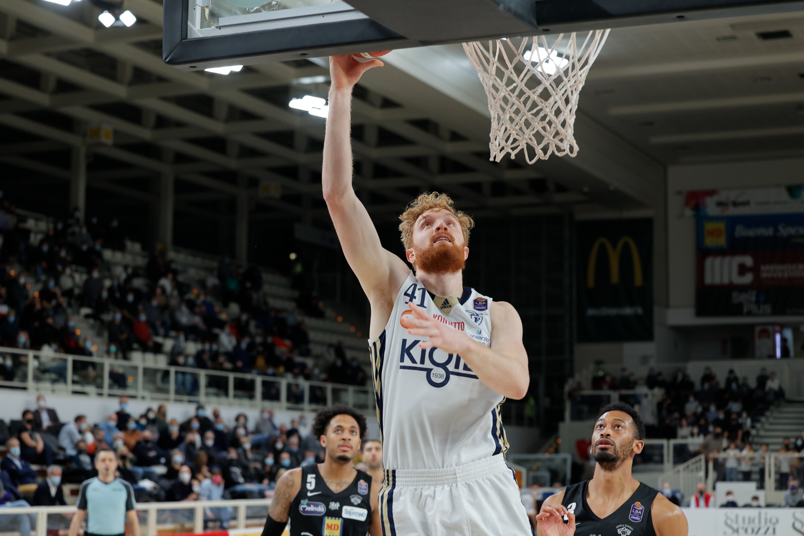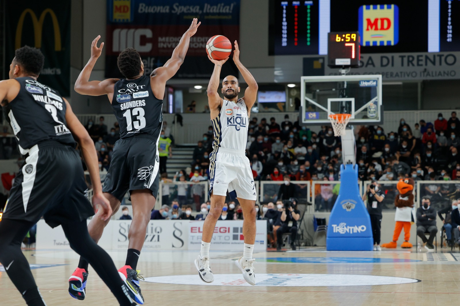 Dolomiti Energia Trentino: Bradford 14, Williams 15, Reynolds 8, Conti 2, Forray 10, Flaccadori 17, Saunders 11, Mezzanotte, Dell’Anna ne, Ladurner 7. Coach Molin.