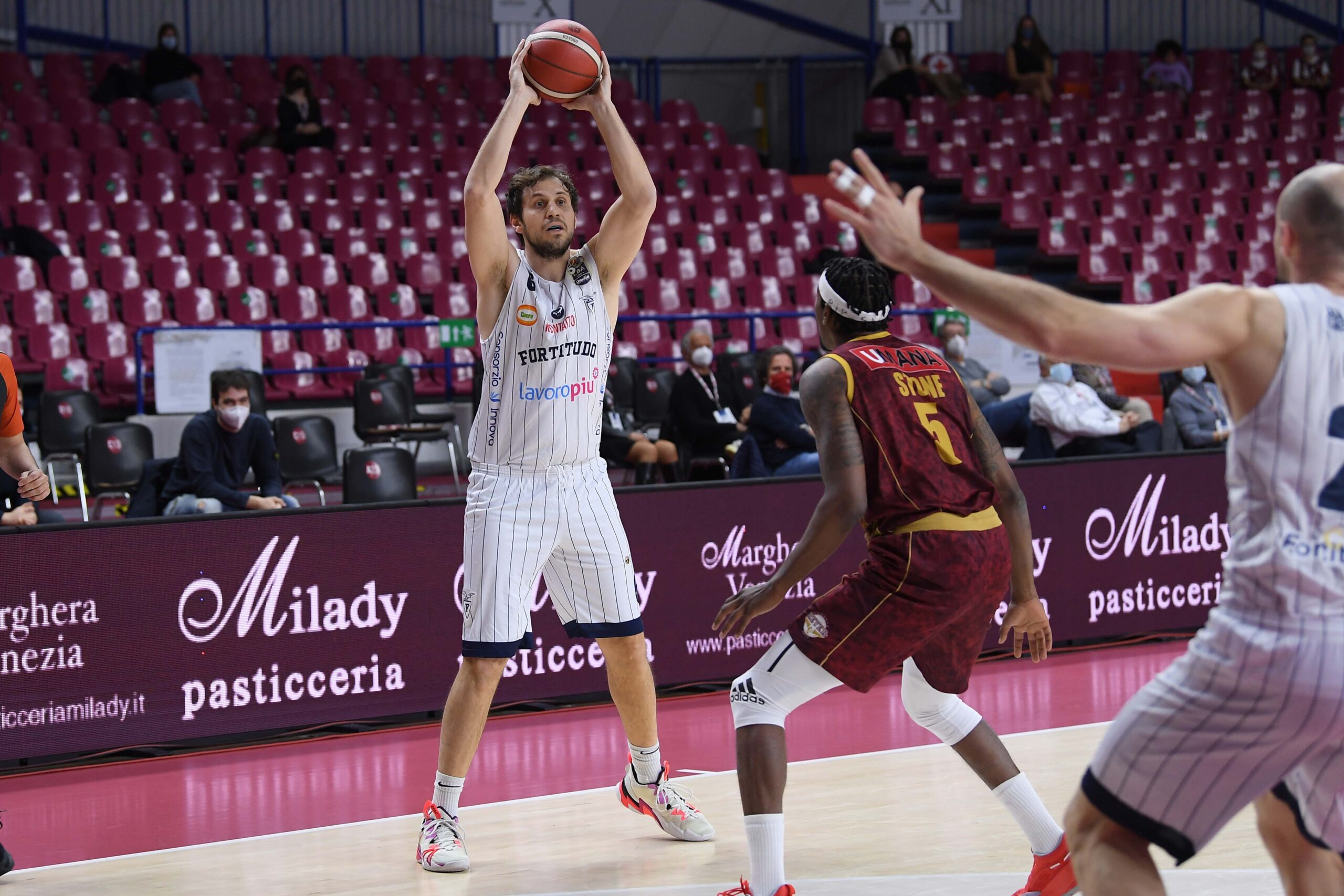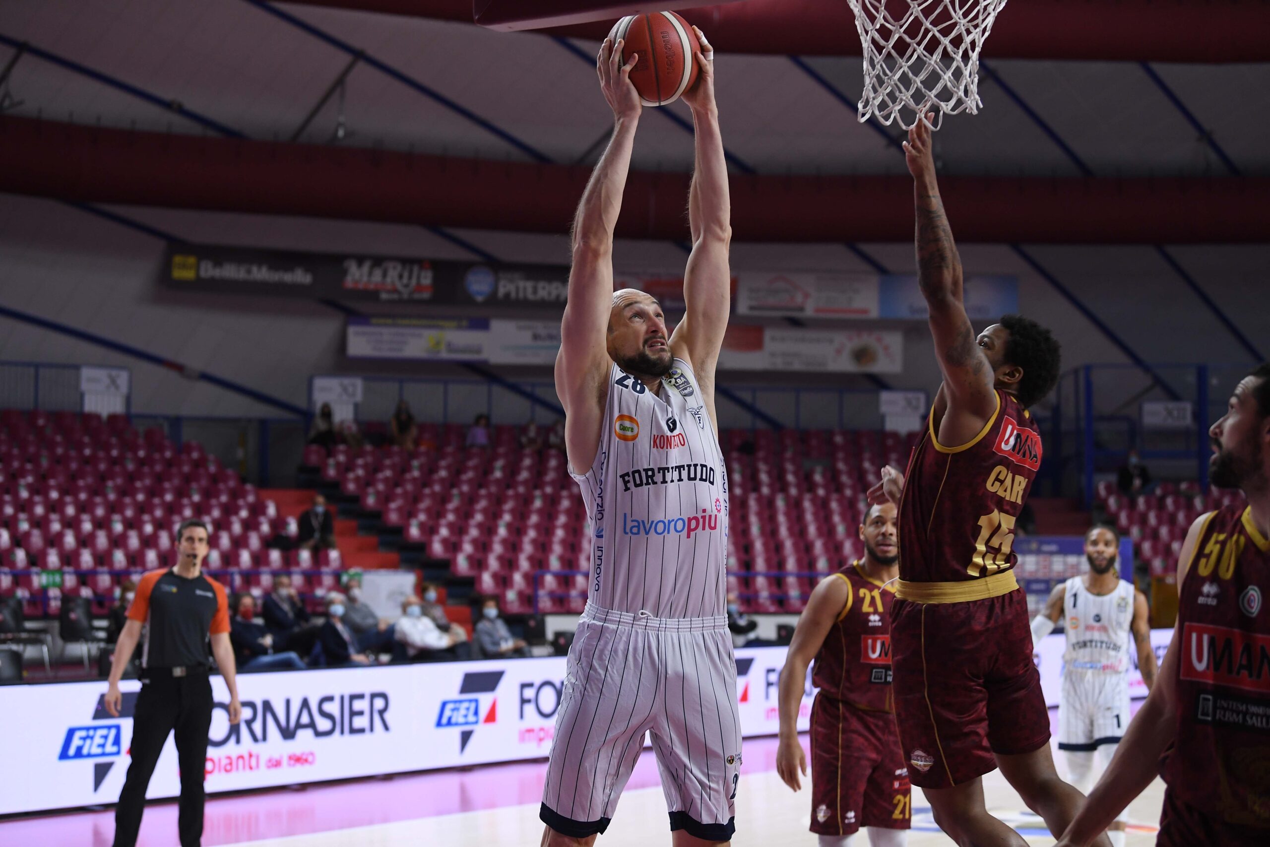FORTITUDO LAVOROPIU’ BOLOGNA: Manna, Tote 16, Pavani, Aradori 15, Fantinelli 5, Banks 16, Withers 15, Baldasso, Mancinelli 1, Cusin 8. All. Dalmonte