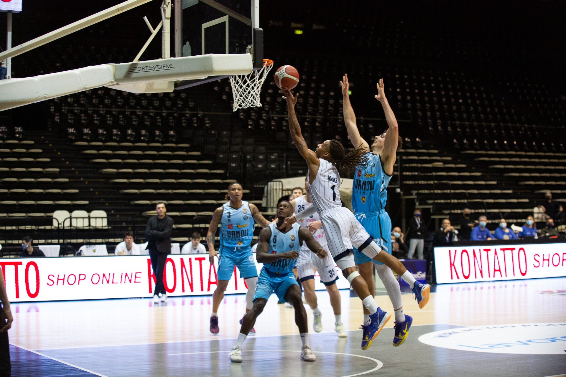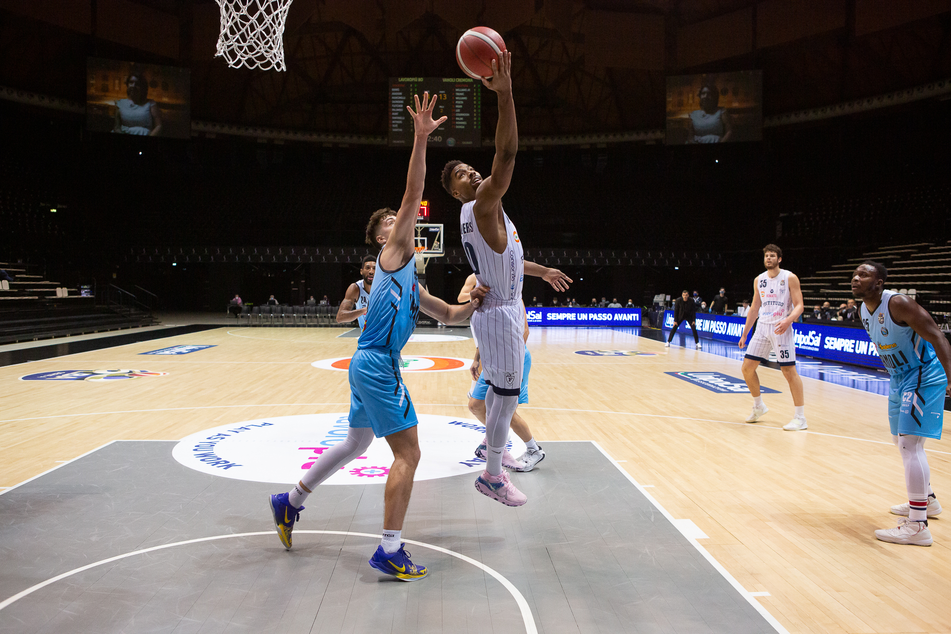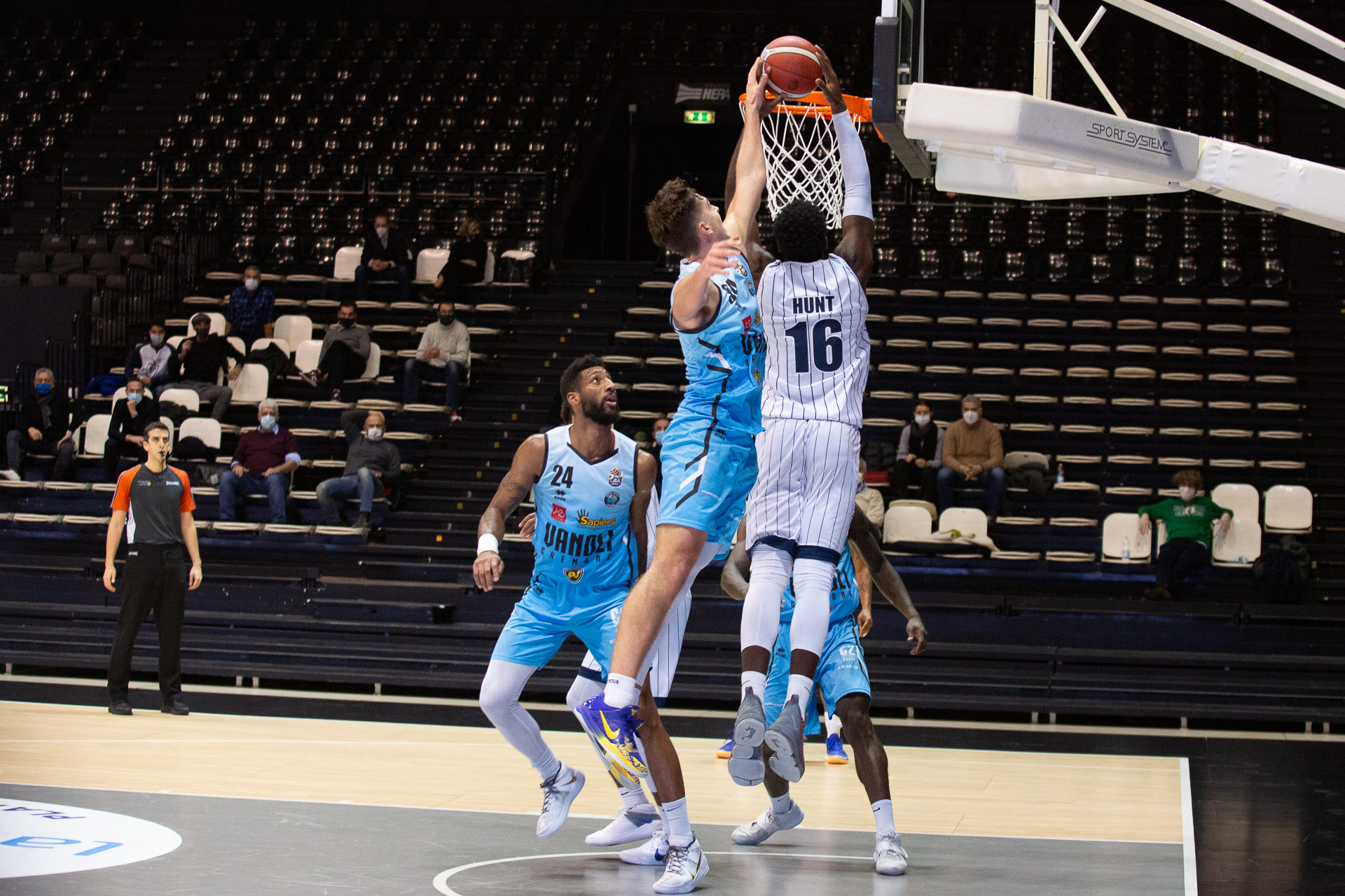 Vanoli Cremona: Williams T. 12, Trunic ne, Williams J. 14, Poeta, Mian 14, Lee 8, Cournooh 3, Palmi, Hommes 20, Donda ne. All. Galbiati