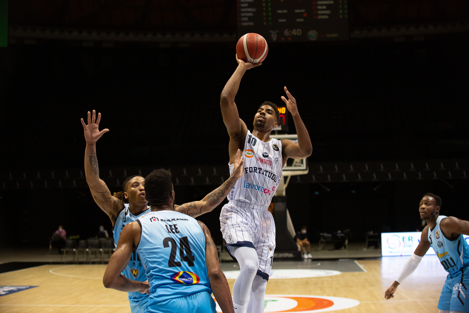 Fortitudo Lavoropiù Bologna: Banks 10, Aradori 26, Mancinelli, Saunders 16, Fletcher 3, Palumbo, Hunt 6, Fantinelli, Withers 6, Totè 18, Sabatini ne. All. Dalmonte