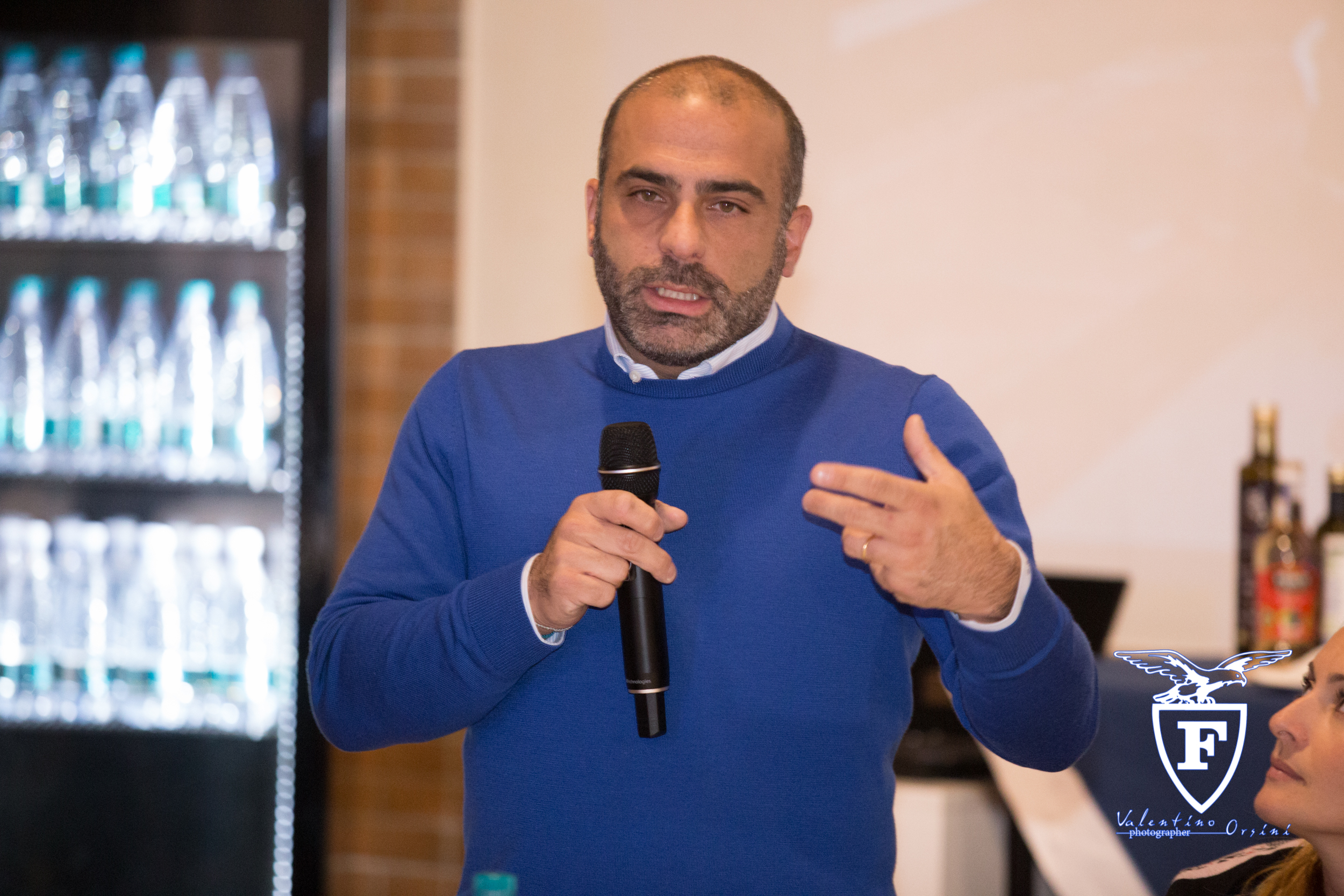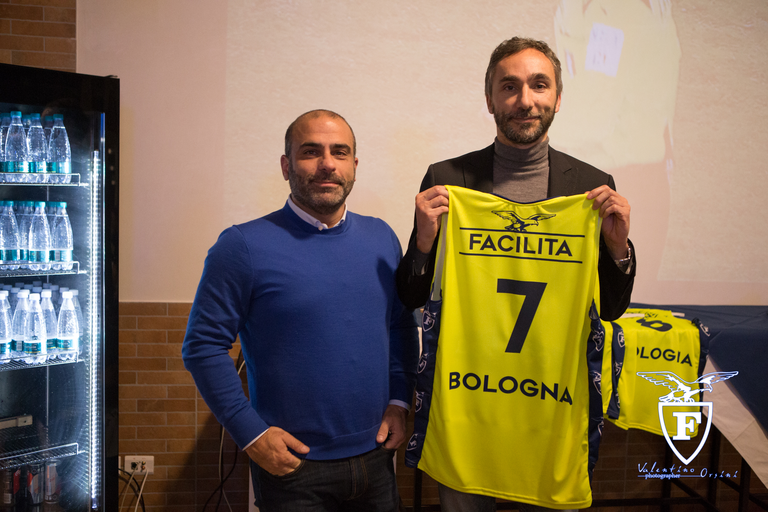 Nell’immagine, il Presidente del Consorzio Club- Emiliano Castelli-, cui sono spettati gli onori di casa assieme a Christian Pavani (Presidente di Fortitudo Pallacanestro), al GM biancoblu Marco Carraretto e ai giocatori Maarty Leunen e Matteo Fantinelli.